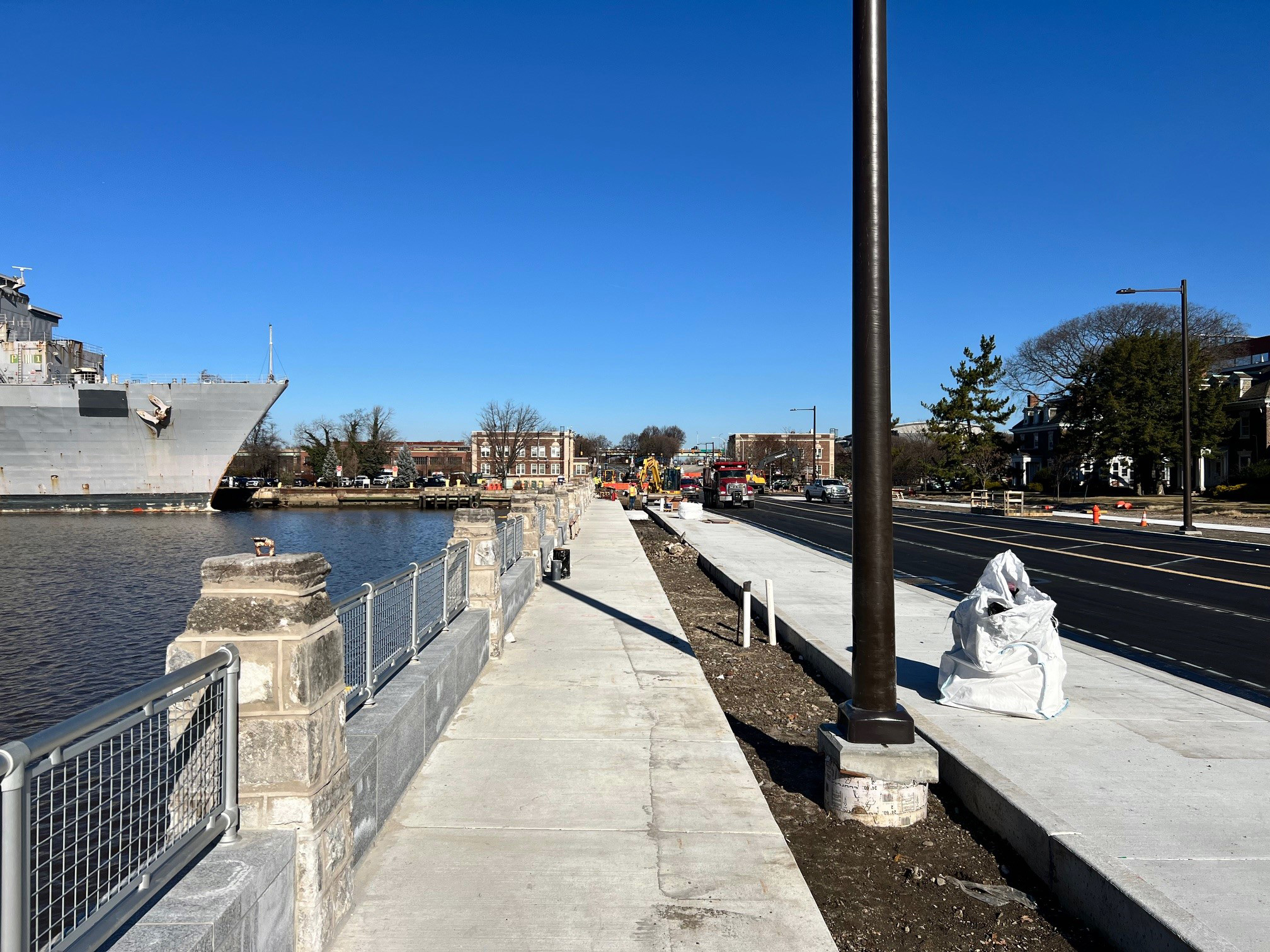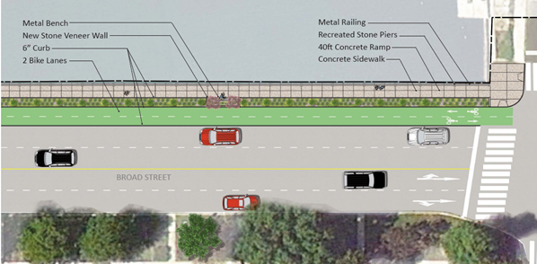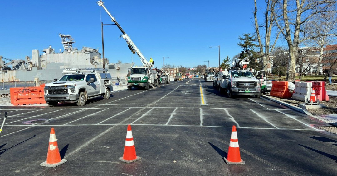 The improvements on this 734-foot section of Broad St. (between Crescent Dr. and Intrepid Ave., known as the quay wall) will help ensure the safety and increase accessibility to the Navy Yard for the more than 150 businesses, 15,000 employees, tens of thousands of yearly visitors, and soon-to-be residents at the Navy Yard.