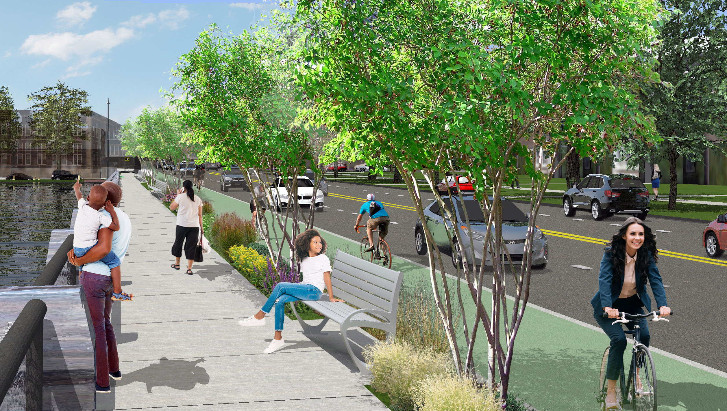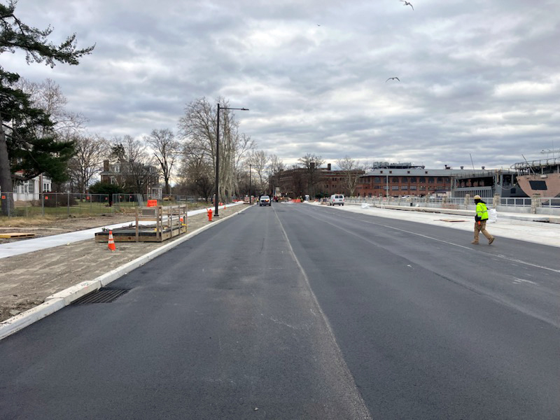 Improvements will continue into the spring with enhancements to a two-way bike lane, a new scenic pedestrian plaza overlooking the Reserve Basin, and new landscaping around the street to beautify the space.